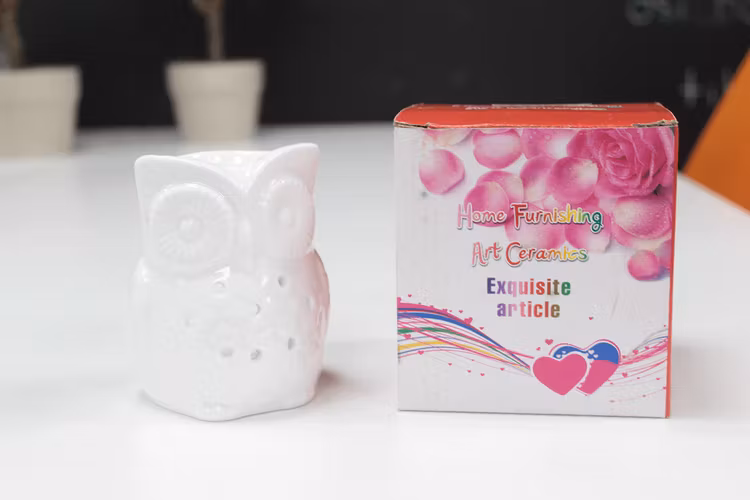Uggla hvid stor, keramik, Aromalampe