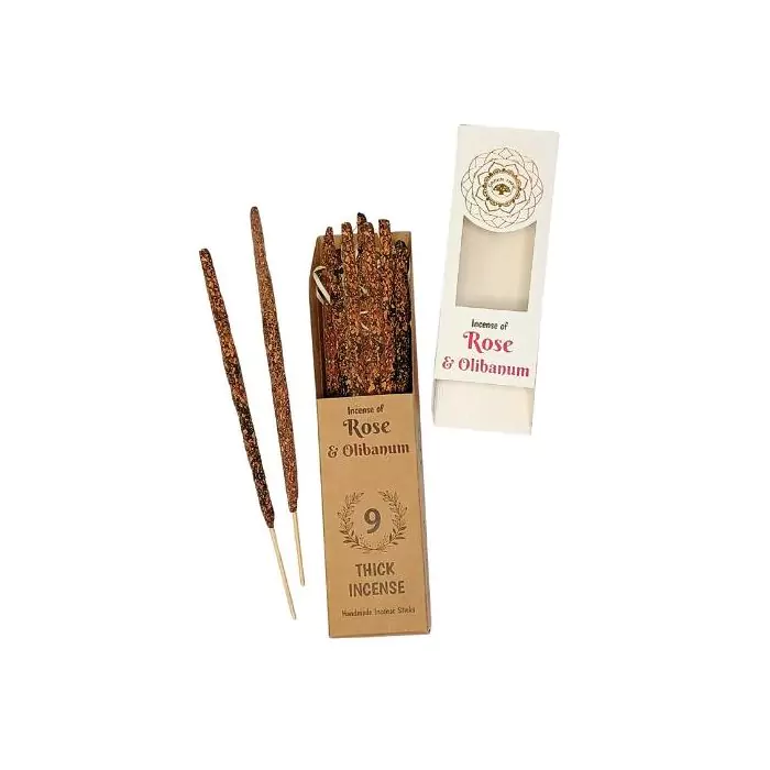 Håndlavede, tykke røgelsepinde lavet af tørrede urter, blomster, bark og harpikser.