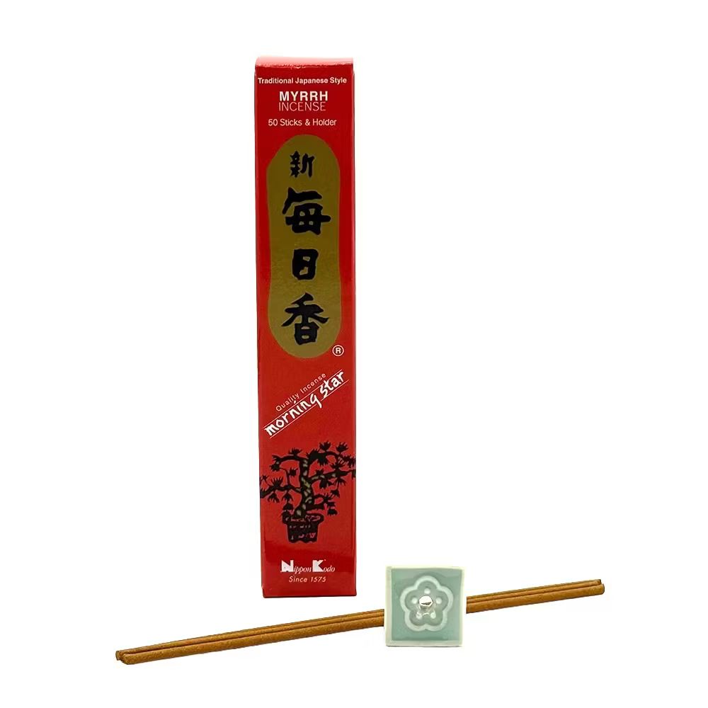 Japansk røgelse. Pakken indeholder 20 g (50 pinde) samt en lille keramikholder. Brændetid ca. 25 min.