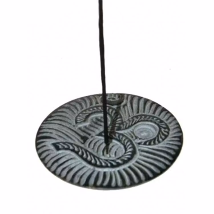 En elegant og stilfuld røgelseholder i skridstenskombination med et delikat Ohm-symbol.